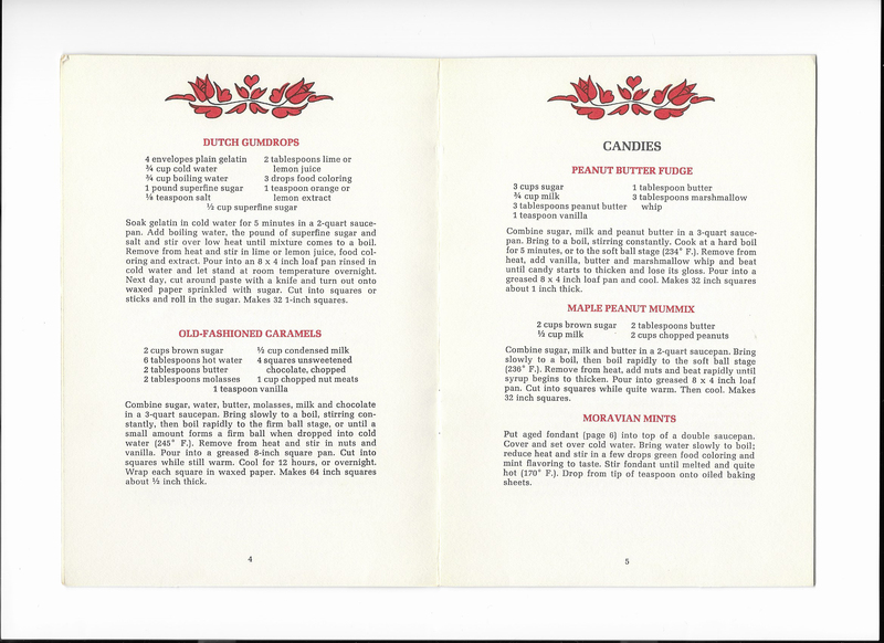 This booklet contains candy recipes as part of the Pennsylvania Dutch Cook Book set.